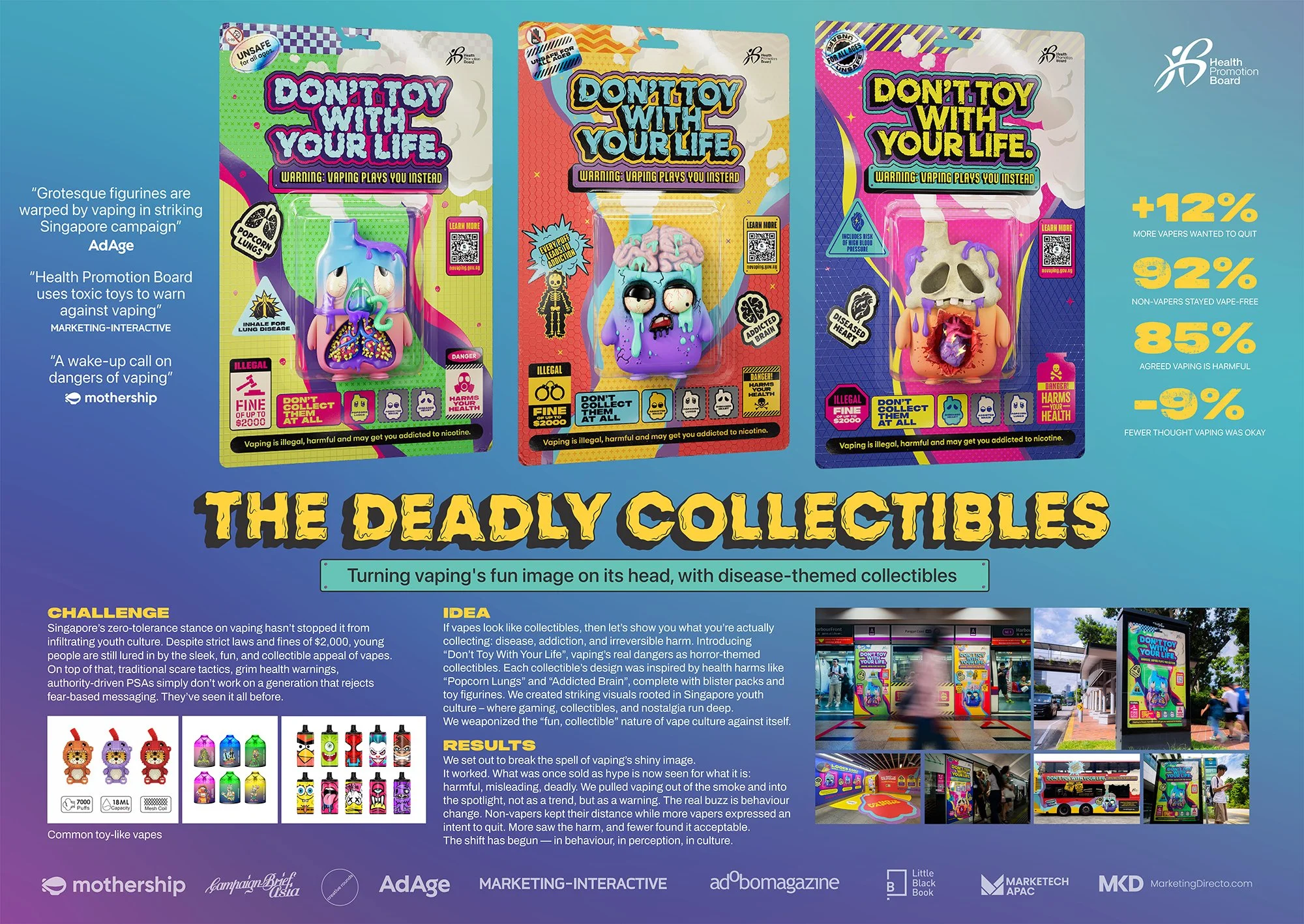 So we flipped the script. In our films, we turned the consequences of vaping into the collectibles themselves. We leaned hard into the collectibles aesthetic—bright colours, bold callouts, and all the addictive vibes—but revealed the real cost: disease, addiction, and regret.
